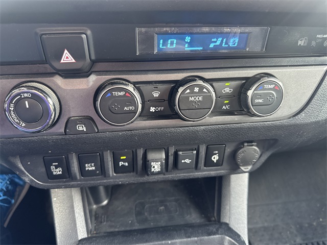 ed Rear Bumper, Driver door bin, Dual front impact airbags, Dual front side impact airbags, Electronic Stability Control, Emergency communication system: Safety Connect with 1-year trial, Engine Immobilizer, Exterior Parking Camera Rear, Fabric Seat Trim (FD), Front anti-roll bar, Front Bucket Seats, Front Center Armrest, Front dual zone A/C, Front fog lights, Front reading lights, Front Seats, Front wheel independent suspension, Heated door mirrors, Illuminated entry, Knee airbag, Leather Shift Knob, LOCAL TRADE IN!, Low tire pressure warning, Mesh Front Grille, NON SMOKER VEHICLE, Occupant sensing airbag, Outside temperature display, Overhead airbag, Overhead console, Panic alarm, Passenger door bin, Power door mirrors, Power driver seat, Power Sliding Rear Window w/Privacy Glass, Power steering, Power windows, PROFESSIONALLY DETAILED FOR DELIVERY!, Radio: AM/FM Radio, Rear Parking Assist Sonar, Rear step bumper, Remote keyless entry, Security system, Speed control, Speed-sensing steering, Split folding rear seat, Steering wheel mounted audio controls, SUPER LOW MILES!, Tachometer, Technology Package, Telescoping steering wheel, Tilt steering wheel, Traction control, TRD Off Road Package, Trip computer, Turn signal indicator mirrors, Variably intermittent wipers, Wheels: 16" x 7J Machined Contrast Alloy. Clean CARFAX. Certified.