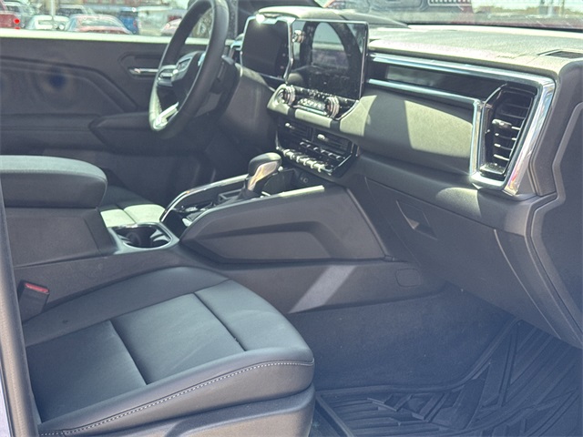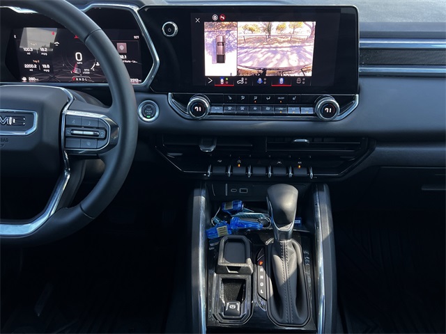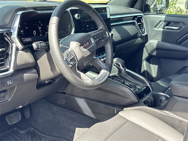 AM/FM radio, Apple CarPlay/Android Auto, Auto High-beam Headlights, Automatic Emergency Braking, Automatic Stop/Start, Blind Zone Steering Assist w/Trailering, BLUETOOTH / HANDSFREE, Brake assist, Bumpers: body-color, Canyon Pro Safety, Canyon Safety Plus Package, CLEAN CARFAX!, Cloth Seat Trim, Compass, Convenience Package, CoreTec Seat Trim, Delay-off headlights, Driver & Front Passenger Illuminated Visors, Driver door bin, Driver Seatback Map Pocket, Driver vanity mirror, Dual front impact airbags, Dual front side impact airbags, Dual-Zone Auto Climate Control Air Conditioning, Electronic Stability Control, Elevation Premium Package, Emergency communication system: OnStar, EZ-Lift & Lower Tailgate, Following Distance Indicator, Forward Collision Alert, Front anti-roll bar, Front Bucket Seats, Front Center Armrest, Front LED Fog Lamps, Front License Plate Kit, Front Passenger Seatback Map Pocket, Front Pedestrian & Bicyclist Braking, Front wheel independent suspension, HD Surround Vision, Heated door mirrors, Heated Driver & Front Passenger Seats, Illuminated entry, Inside Rear-View Auto-Dimming Mirror, IntelliBeam Automatic High Beam On/Off, Interior Overhead Courtesy Light w/Dual Reading Lamp, Lane Keep Assist w/Lane Departure Warning, LOCAL TRADE IN!, Low tire pressure warning, MultiStow Tailgate Storage Compartment, NAVIGATION, Navigation System, NON SMOKER VEHICLE, Occupant sensing airbag, Off-Road Suspension, Outside temperature display, Overhead airbag, Overhead console, Panic alarm, Passenger door bin, Passenger vanity mirror, Power door mirrors, Power Driver Lumbar Control Seat Adjuster, Power steering, Power windows, Preferred Equipment Group 2VL, Preferred Package, PROFESSIONALLY DETAILED FOR DELIVERY!, Radio data system, Radio: 11.3" Diagonal Premium GMC Infotainment Sys, Rear Center Fold-Down Armrest w/2 Cupholders, Rear Cross Traffic Braking, Rear of Console 120-Volt Power Outlet, Rear Pedestrian Alert, Rear reading lights, Rear step bumper, Rear window defroster, Remote keyless entry, Remote Vehicle Starter System, Security system, SiriusXM w/360L, Speed control, Speed-sensing steering, Split folding rear seat, Steering wheel mounted audio controls, Stop/Start System Disable Button Engine Control, SUPER LOW MILES!, Tachometer, Tailgate Keyed Cylinder Lock, Technology Package, Tilt & Telescopic Manual Steering Column, Tilt steering wheel, Traction control, Trip computer, Ultrasonic Rear Park Assist, Variably intermittent wipers, Wheels: 18" x 8.5" Dark Gray Painted Aluminum, Wireless Apple CarPlay/Wireless Android Auto. Clean CARFAX. Certified.