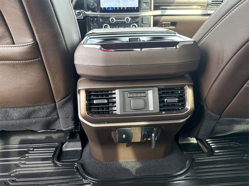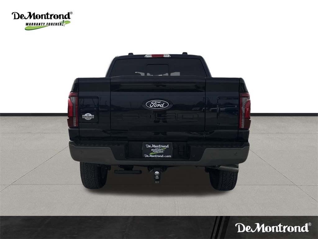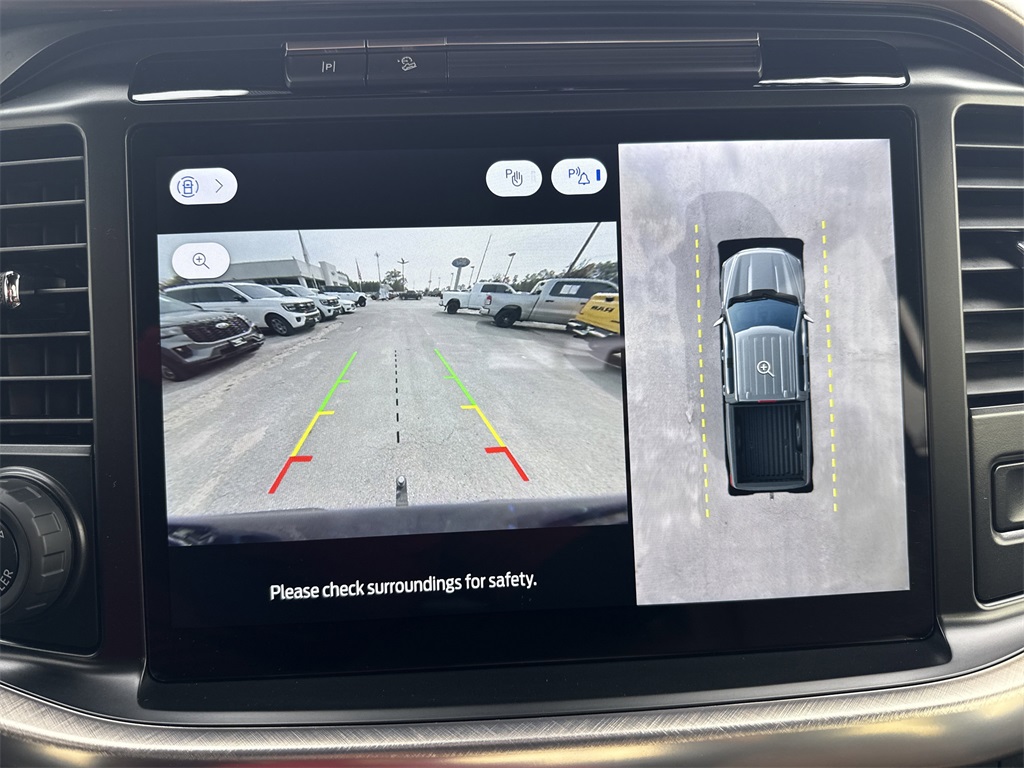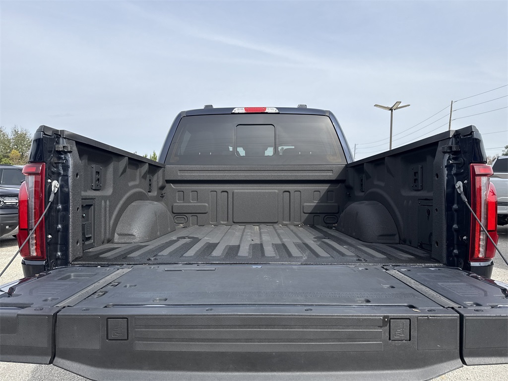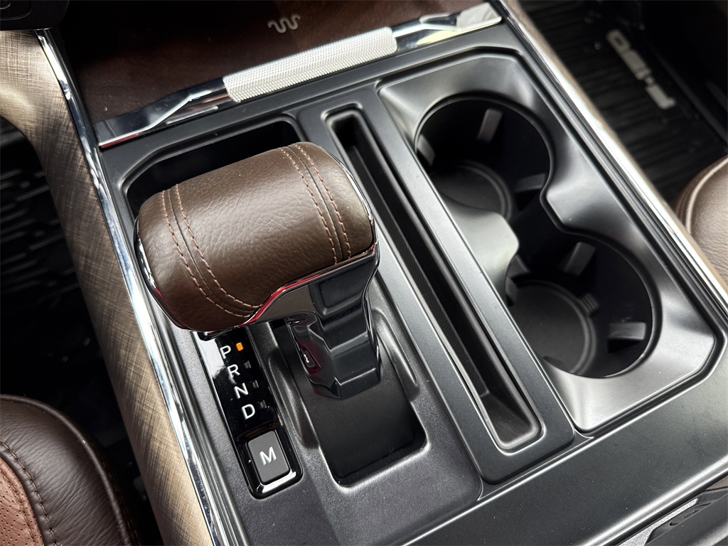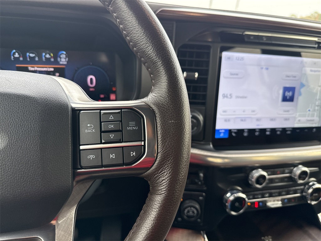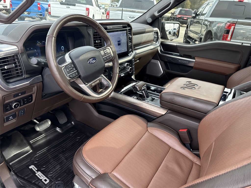o-dimming door mirrors, Auto-dimming Rear-View mirror, Automatic temperature control, Brake assist, Chrome wheels, Compass, Delay-off headlights, Driver door bin, Driver vanity mirror, Dual front impact airbags, Dual front side impact airbags, Electronic Stability Control, Emergency communication system: SYNC 4 911 Assist, Front anti-roll bar, Front Bucket Seats, Front Center Armrest, Front dual zone A/C, Front fog lights, Front License Plate Bracket, Front reading lights, Front wheel independent suspension, Fully automatic headlights, Garage door transmitter, Genuine wood dashboard insert, Heads-Up Display, Heated door mirrors, Heated front seats, Heated rear seats, Heated steering wheel, Illuminated entry, Internet access capable: FordPass Connect 5G, King Ranch Multicontour Leather Bucket Seats, Leather steering wheel, Low tire pressure warning, Memory seat, Navigation system: Connected Navigation, Occupant sensing airbag, Outside temperature display, Overhead airbag, Overhead console, Panic alarm, Passenger door bin, Passenger vanity mirror, Pedal memory, Power door mirrors, Power driver seat, Power moonroof, Power passenger seat, Power steering, Power windows, Radio data system, Radio: B&O Unleashed Sound System by Bang & Olufsen, Rain sensing wipers, Rear reading lights, Rear seat center armrest, Rear step bumper, Rear window defroster, Remote keyless entry, Retractable Rear Center Step, Security system, Speed control, Split folding rear seat, Steering wheel memory, Steering wheel mounted audio controls, SYNC 4 w/Enhanced Voice Recognition, Tachometer, Telescoping steering wheel, Tilt steering wheel, Traction control, Trip computer, Turn signal indicator mirrors, Variably intermittent wipers, Ventilated front seats, Voltmeter, Wheel Well Liner, and Wheels: 20" Chrome-Like PVD.