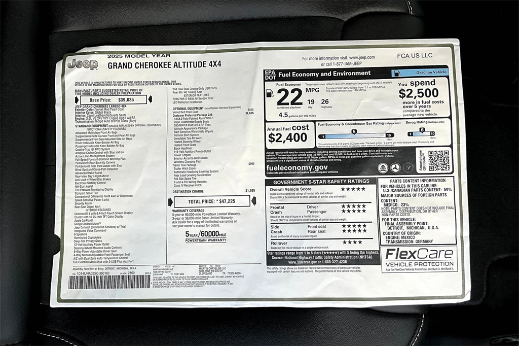 Velvet Red Pearlcoat 2025 Jeep Grand Cherokee Altitude X 4WD 8-Speed Automatic 3.6L V6 24V VVT 4WD.