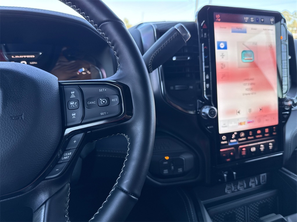 o View Camera, Digital Rearview Mirror, Drowsy Driver Detection, LED Bed Lighting, MOPAR Spray In Bedliner, Power Deployable Running Boards, Surround View Camera System, Traffic Sign Recognition, Trailer Reverse Guidance, and Trailer Tire Pressure Monitoring System), Night Edition (Black Exterior Truck Badging, Black Grille Limited, Black Wheel Center Hub, Body Color Grille Surround, and Sport Performance Hood), Quick Order Package 24M Limited, 115V Auxiliary Rear Power Outlet, 17 Speakers, 2 Way Rear Headrest Seat, 3.42 Axle Ratio, 4 Way Front Headrests, 4-Wheel Disc Brakes, 6000# Front Axle w/Hub Ext, ABS brakes, Adjustable pedals, Air Conditioning, Alloy wheels, AM/FM radio: SiriusXM with 360L, Apple CarPlay/Android Auto, Audio memory, Auto High-beam Headlights, Auto-dimming door mirrors, Auto-dimming Rear-View mirror, Automatic temperature control, Bodyside moldings, Box & Rear Fender Clearance Lamps, Brake assist, Bucket Seats, Bumpers: body-color, Center Hub, Clearance Lamps, Compass, Delay-off headlights, Driver door bin, Driver vanity mirror, Dual front impact airbags, Dual front side impact airbags, Dual Rear Wheel Fender Flare Tracking, Dual Rear Wheels, Dual Wireless Charging Pad, Electronic Stability Control, Front anti-roll bar, Front Bucket Seats, Front Center Armrest w/Storage, Front dual zone A/C, Front fog lights, Front reading lights, Front Seat Back Map Pockets, Full Length Premium Upgraded Floor Console, Fully automatic headlights, Garage door transmitter, Genuine wood console insert, Genuine wood dashboard insert, Genuine wood door panel insert, harman/kardon® Speakers, Heated door mirrors, Heated Front Seats, Heated front seats, Heated rear seats, Heated Second Row Seats, Heated Steering Wheel, Heated steering wheel, High Back Seats, Illuminated entry, Leather steering wheel, Low tire pressure warning, Memory seat, Navigation System, Occupant sensing airbag, Outside temperature display, Overhead airbag, Overhead console, Panic alarm, ParkView Rear Back-Up Camera, Passenger door bin, Passenger vanity mirror, Pedal memory, Power 2-Way Driver Lumbar Adjust, Power 2-Way Passenger Lumbar Adjust, Power Adjust 8-Way Driver Seat, Power Adjust 8-Way Front Passenger Seat, Power door mirrors, Power driver seat, Power passenger seat, Power steering, Power Sunroof, Power windows, Radio data system, Radio: Uconnect 5 Nav w/14.4" Display, Radio/Driver Seat/Mirrors/Pedals Memory, Rain sensing wipers, Rear 60/40 Folding Seat, Rear reading lights, Rear seat center armrest, Rear step bumper, Rear window defroster, Remote keyless entry, Security system, Speed control, Split folding rear seat, Steering wheel mounted audio controls, Tachometer, Tilt steering wheel, Traction control, Trip computer, Turn signal indicator mirrors, Ultra Premium Leather Seats, Variably intermittent wipers, Ventilated Front Seats, Ventilated front seats, Voltmeter, Wheels: 17" x 6.0" Black Machined Aluminum, Wheels: 17" x 6.0" Polished Aluminum, and Wheels: 20" x 8" Diamond Cut Aluminum.
