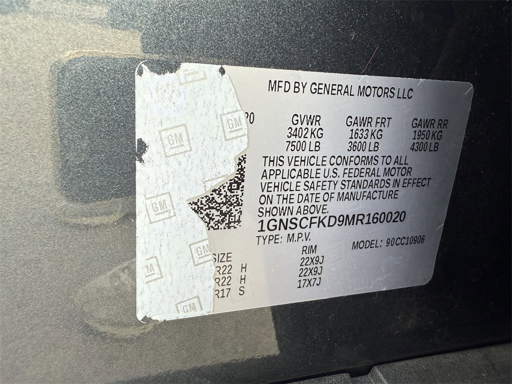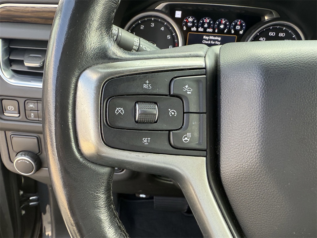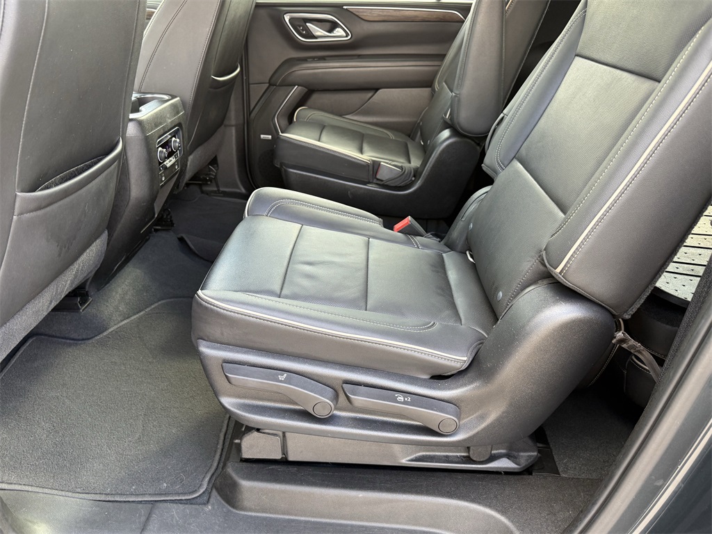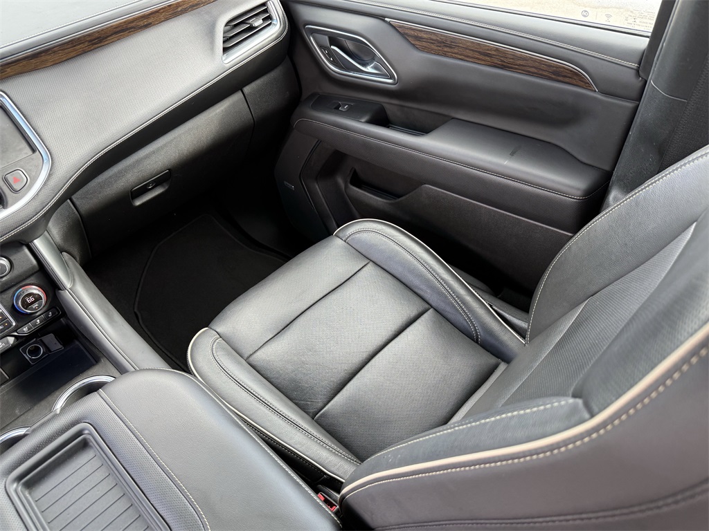 nside Rearview Auto-Dimming Rear Camera Mirror, Rear Camera Mirror Washer, and Rear Pedestrian Alert), License Plate Front Mounting Package, Max Trailering Package (Extra Capacity Cooling System), Preferred Equipment Group 1LZ (12-Way Power Driver & Passenger Seat Adjusters, 1st & 2nd Row Color-Keyed Carpeted Floor Mats, 2 USB Data Ports, 3rd Row 60/40 Power-Folding Split-Bench, Auto-Dimming Inside Rear-View Mirror, Automatic Heated Steering Wheel, Bose 10-Speaker Surround w/CenterPoint, Bright Front & Rear Door Sill Plates, Chrome Door Handles w/Body-Color Strip, Chrome Mirror Caps, Color-Keyed Carpeting Floor Covering, Driver & Front Outboard Passenger Airbags, Dual Exhaust System, Enhanced Driver Information Center, Floor Console w/Storage Area, Front & Rear Park Assist, Hands-Free Rear Power Programmable Liftgate, HD Radio, Heated & Ventilated Driver & Front Passenger Seats, Heated 2nd Row Outboard Seats, Heated Driver & Front Passenger Seats, Infotainment Display, Lane Change Alert w/Side Blind Zone Alert, Lane Keep Assist w/Lane Departure Warning, Leather-Wrapped Steering Wheel, LED Daytime Running Lamps, Memory Settings, Outside Heated Power-Adjustable Mirrors, Power Release 2nd Row Bucket Seats, Power Tilt & Telescopic Steering Column, Rear Cross Traffic Alert, Remote Start, Safety Alert Seat, SiriusXM Radio w/360L, and Universal Home Remote), Premium Package (Adaptive Cruise Control, Dual-Pane Power Panoramic Sunroof, and Enhanced Automatic Emergency Braking), Texas Edition (Texas Edition Badging, Wheel Locks (Set of 4) (LPO), and Wheels: 22" x 9" Polished Aluminum), 10 Speakers, 20" x 9" Polished Aluminum Wheels, 3.23 Rear Axle Ratio, 3rd row seats: split-bench, 4-Wheel Disc Brakes, ABS brakes, Adaptive suspension, Air Conditioning, Alloy wheels, AM/FM radio: SiriusXM with 360L, Apple CarPlay/Android Auto, Auto High-beam Headlights, Auto-dimming door mirrors, Auto-dimming Rear-View mirror, Auto-leveling suspension, Automatic temperature control, Brake assist, Bumpers: body-color, Compass, Console-Mounted Safe (LPO), Delay-off headlights, Driver door bin, Driver vanity mirror, Dual front impact airbags, Dual front side impact airbags, Electronic Stability Control, Emergency communication system: OnStar and Chevrolet connected services capable, Four wheel independent suspension, Front anti-roll bar, Front Bucket Seats, Front Center Armrest, Front dual zone A/C, Front reading lights, Fully automatic headlights, Garage door transmitter, Heated door mirrors, Heated front seats, Heated rear seats, Heated steering wheel, Illuminated entry, Leather steering wheel, Low tire pressure warning, Magnetic Ride Control Suspension, Memory seat, Navigation System, Occupant sensing airbag, Outside temperature display, Overhead airbag, Overhead console, Panic alarm, Passenger door bin, Passenger vanity mirror, Perforated Leather Seating Surfaces, Power door mirrors, Power driver seat, Power Liftgate, Power passenger seat, Power steering, Power windows, Premium audio system: Chevrolet Infotainment 3 Premium, Radio: Chevrolet Infotainment 3 Premium System, Rain sensing wipers, Rear air conditioning, Rear anti-roll bar, Rear reading lights, Rear window defroster, Rear window wiper, Remote keyless entry, Roof rack: rails only, Security system, Speed control, Speed-sensing steering, Split folding rear seat, Spoiler, Steering wheel memory, Steering wheel mounted audio controls, Tachometer, Telescoping steering wheel, Tilt steering wheel, Traction con