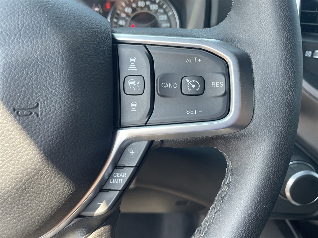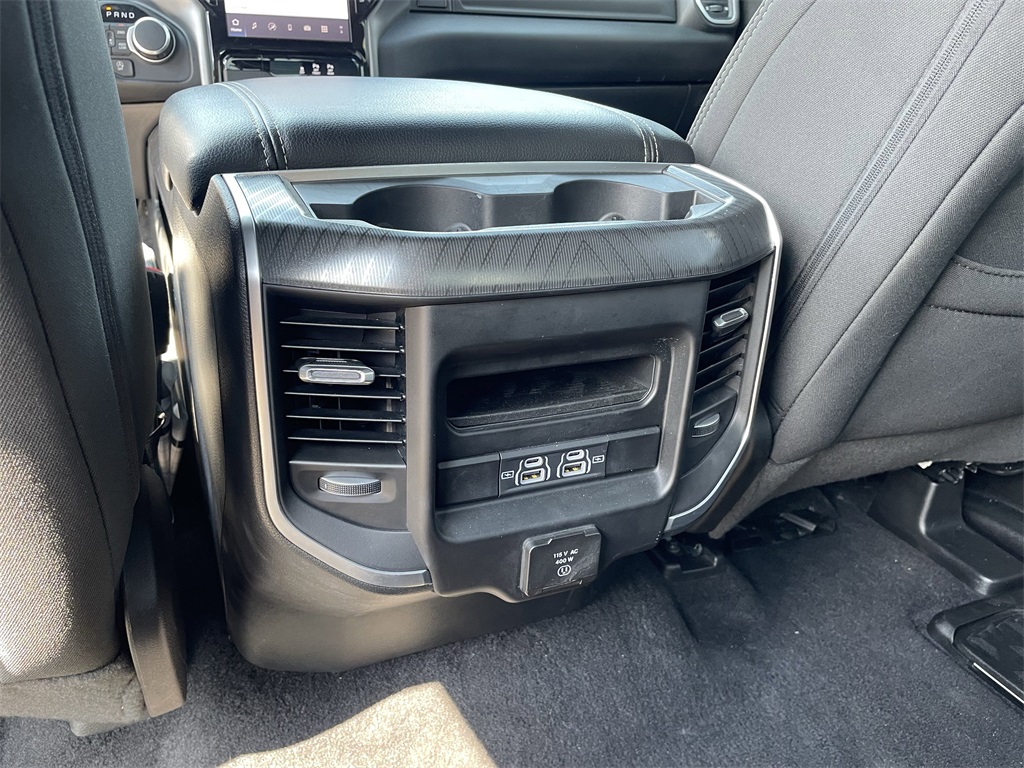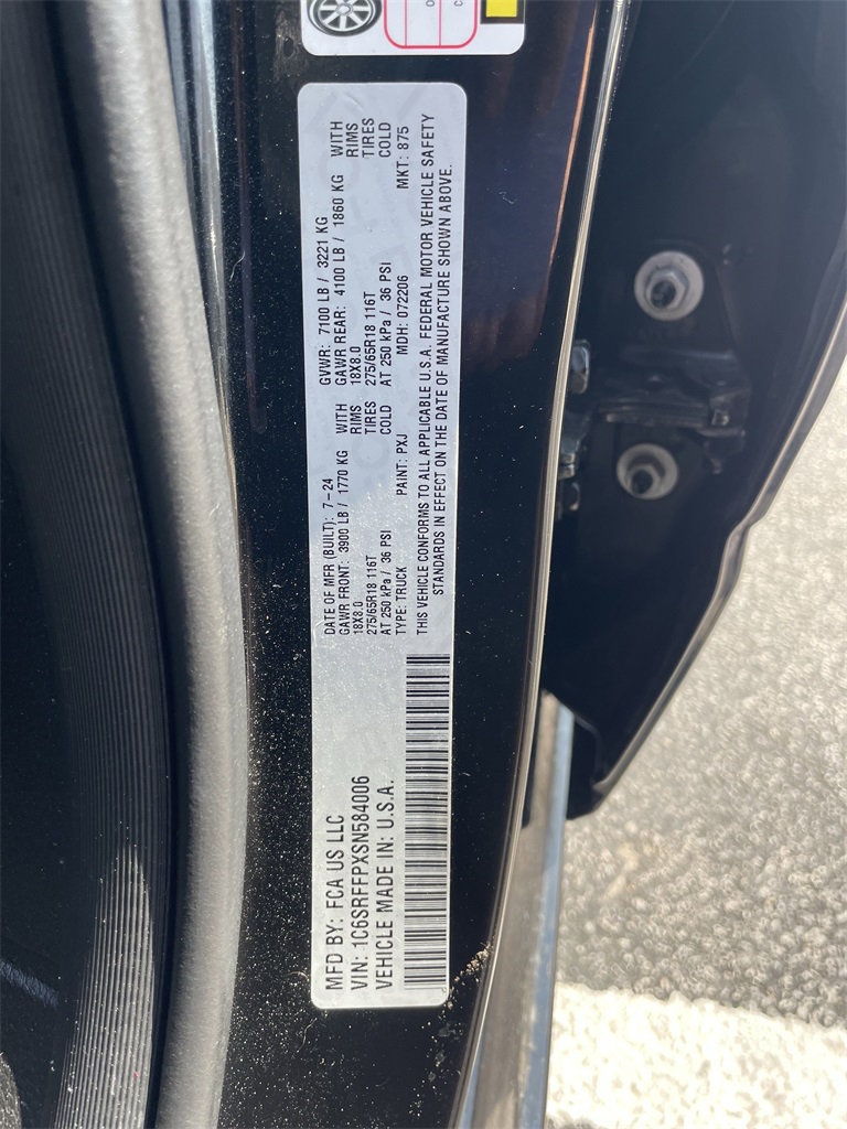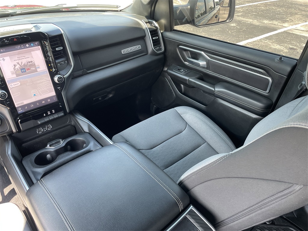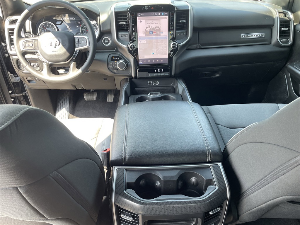 ual Zone Control, Apple CarPlay, Auto Power-Folding Mirrors, Auto-Dimming Exterior Driver Mirror, Auto-Dimming Rear-View Mirror, Black Exterior Mirrors, Black Premium Power Mirrors, Cluster 7.0" TFT Color Display, Configurable Drive Mode, Connected Travel & Traffic Services, Connectivity - US/Canada, Convex Wide-Angle Exterior Mirror Insert, Exterior Mirrors Courtesy Lamps, Exterior Mirrors w/Heating Element, Exterior Mirrors w/Supplemental Signals, Glove Box Lamp, Google Android Auto, GPS Antenna Input, GPS Navigation, HD Radio, Heated Front Seats, Heated Steering Wheel, Integrated Voice Command w/Bluetooth, Leather Wrapped Steering Wheel, LED Dome Lamp w/On/Off Switch, LED Footwell Lighting, Media Hub w/2 Charge Only USBs, Overhead LED Lamps, Power 2-Way Driver Lumbar Adjust, Power Adjust 8-Way Driver Seat, Power Adjustable Pedals, Premium Overhead Console, Radio: Uconnect 5 Nav w/12.0" Display, Rear Power Sliding Window, Rear Window Defroster, Remote Tailgate Release, Security Alarm, SiriusXM w/360L, Steering Wheel Mounted Audio Controls, Sun Visors w/Illuminated Vanity Mirrors, Universal Garage Door Opener, and USB Host Flip), Quick Order Package 21Z Big Horn, Certified Pre-Owned Go Certified, 3 Rear Seat Head Restraints, 3.55 Rear Axle Ratio, 4 Way Front Headrests, 4-Wheel Disc Brakes, 6 Speakers, ABS brakes, Air Conditioning, Alloy wheels, AM/FM radio, Apple CarPlay/Android Auto, Auto High-beam Headlights, Brake assist, Bumpers: chrome, Cloth Bench Seat, Compass, Delay-off headlights, Driver door bin, Dual front impact airbags, Dual front side impact airbags, Electronic Stability Control, Front anti-roll bar, Front Center Armrest w/Storage, Front fog lights, Front License Plate Bracket, Front reading lights, Front Seat Back Map Pockets, Front wheel independent suspension, Fully automatic headlights, Heated door mirrors, Illuminated entry, Low tire pressure warning, Manual Adjust 4-Way Front Passenger Seat, Manual Folding Exterior Mirrors, Manufacturer's Statement of Origin, Occupant sensing airbag, Outside temperature display, Overhead airbag, Overhead console, Panic alarm, ParkView Rear Back-Up Camera, Passenger door bin, Passenger vanity mirror, Power door mirrors, Power steering, Power windows, Radio data system, Radio: Uconnect 5 W w/8.4" Display, RAM Grille Badge - Chrome, Rear 60/40 Folding Seat, Rear anti-roll bar, Rear seat center armrest, Rear step bumper, Remote keyless entry, Speed control, Split folding rear seat, Supplier Part Tracking (J-1), Tachometer, Telescoping steering wheel, Tilt steering wheel, Traction control, Trip computer, Variably intermittent wipers, Voltmeter, and Wheels: 18" x 8" Cast-Aluminum Painted.
