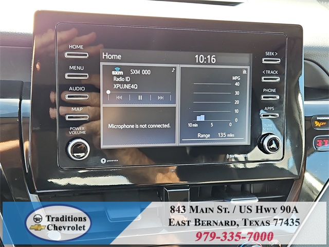 A/C, Heated door mirrors, Illuminated entry, Low tire pressure warning, Remote keyless entry, Traction control, 18" x 8J Alloy Wheels, 4-Wheel Disc Brakes, 6 Speakers, Air Conditioning, AM/FM radio: SiriusXM, Apple CarPlay/Android Auto, Auto High-beam Headlights, Automatic temperature control, Brake assist, Bumpers: body-color, Delay-off headlights, Driver door bin, Driver vanity mirror, Dual front impact airbags, Dual front side impact airbags, Emergency communication system: Safety Connect (1-year trial), Exterior Parking Camera Rear, Four wheel independent suspension, Front anti-roll bar, Front Bucket Seats, Front Center Armrest, Front reading lights, Fully automatic headlights, Knee airbag, Leather steering wheel, Occupant sensing airbag, Outside temperature display, Overhead airbag, Overhead console, Panic alarm, Passenger door bin, Passenger vanity mirror, Power door mirrors, Power driver seat, Power steering, Power windows, Radio data system, Radio: Audio, Rear anti-roll bar, Rear seat center armrest, Rear side impact airbag, Rear window defroster, Security system, Speed control, Speed-sensing steering, Split folding rear seat, Spoiler, Sport SofTex Seat Trim w/Fabric Inserts, Steering wheel mounted audio controls, Tachometer, Telescoping steering wheel, Tilt steering wheel, Trip computer, Turn signal indicator mirrors, and Variably intermittent wipers.