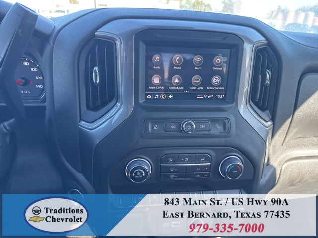 Volt Interior Power Outlet, 3.5" Monochromatic Display Driver Info Center, Bluetooth® For Phone, Color-Keyed Carpeting Floor Covering, Deep-Tinted Glass, Dual Rear USB Ports (Charge Only), Electronic Cruise Control, Front Frame-Mounted Black Recovery Hooks, Front Rubberized Vinyl Floor Mats, HD Rear Vision Camera, Manual Tilt Wheel Steering Column, OnStar Services Capable, Power Front Windows w/Driver Express Up/Down, Power Front Windows w/Passenger Express Down, Power Rear Windows w/Express Down, Rear 60/40 Folding Bench Seat (Folds Up), Rear Rubberized-Vinyl Floor Mats, Remote Keyless Entry, SiriusXM Trial Subscription, Standard Tailgate, Teen Driver, Tire Pressure Monitoring System, and Wi-Fi Hot Spot Capable), Trailering Package (Hitch Guidance), CARBRAVO CERTIFIED Certified, 8-Speed Automatic, Black Cloth, 3 Years SiriusXM, 3.42 Rear Axle Ratio, 4-Wheel Disc Brakes, 40/20/40 Front Split-Bench Seat, 6 Speakers, 6-Speaker Audio System, ABS brakes, Air Conditioning, Alloy wheels, AM/FM radio: SiriusXM, Apple CarPlay/Android Auto, Auto High-beam Headlights, Automatic Emergency Braking, Brake assist, Bumpers: body-color, Chevytec Spray-On Black Bedliner, Cloth Seat Trim, Compass, Delay-off headlights, Driver door bin, Driver vanity mirror, Dual front impact airbags, Dual front side impact airbags, Electronic Stability Control, Emergency communication system: OnStar, Following Distance Indicator, Forward Collision Alert, Front anti-roll bar, Front Center Armrest w/Storage, Front License Plate Kit, Front Pedestrian Braking, Front reading lights, Front wheel independent suspension, Fully automatic headlights, Heated door mirrors, Illuminated entry, IntelliBeam Automatic High Beam On/Off, Lane Keep Assist w/Lane Departure Warning, Low tire pressure warning, Occupant sensing airbag, Outside temperature display, Overhead airbag, Overhead console, Panic alarm, Passenger door bin, Passenger vanity mirror, Power door mirrors, Power driver seat, Power steering, Power windows, Premium audio system: Chevrolet Infotainment 3, Radio data system, Radio: Chevrolet Infotainment 3 System, Rear reading lights, Rear step bumper, Rear window defroster, Remote keyless entry, Security system, Speed control, Speed-sensing steering, Split folding rear seat, Tachometer, Tilt steering wheel, Traction control, Trip computer, Variably intermittent wipers, Voltmeter, and Wheels: 20" x 9" Bright Silver Painted Aluminum. Certification Program Details: CARBRAVO CERTIFIED