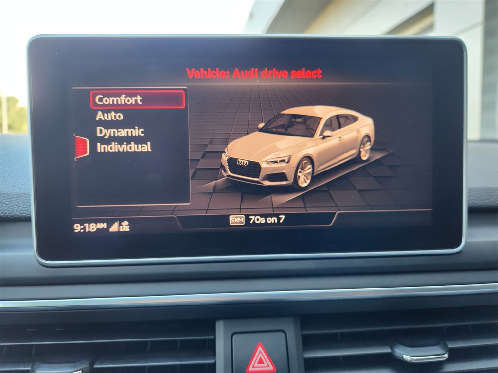 2019 Audi A5 Sportback Premium Plus quattro ABS brakes, Alloy wheels, Compass, Electronic Stability Control, Front Bucket Seats, Front Center Armrest, Front dual zone A/C, Heated door mirrors, Heated front seats, Heated Front Sport Seats, Illuminated entry, Low tire pressure warning, Power Liftgate, Power moonroof, Power passenger seat, Remote keyless entry, Split folding rear seat, Traction control. Black Metallic quattro 7-Speed Automatic S tronic 2.0L 4-Cylinder TFSI