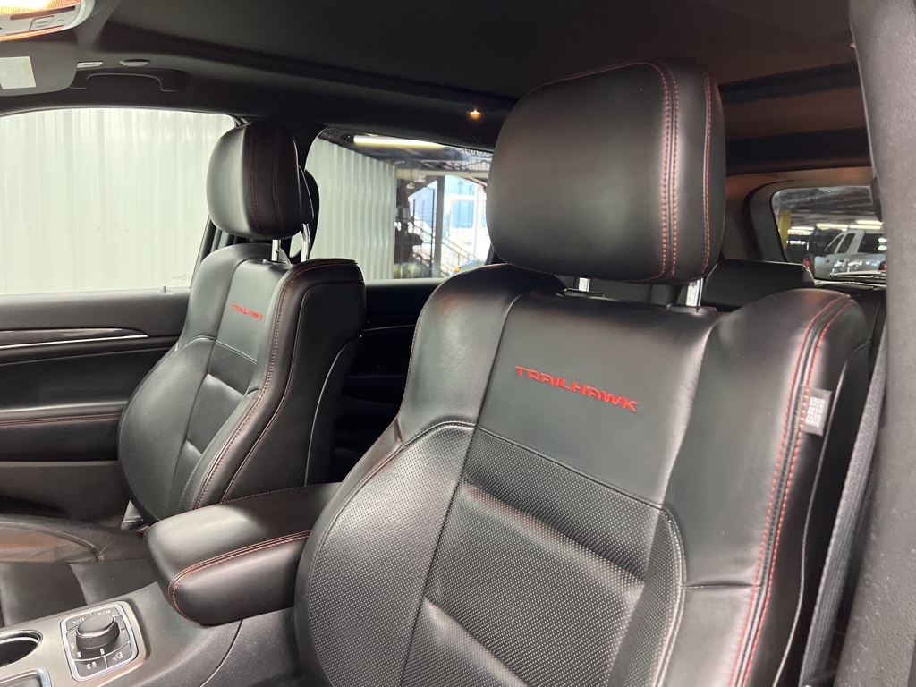 , and Trailhawk Leather Trim Seats w/Perforation), 4WD, 1-Year SiriusXM Guardian Trial, 10 Speakers, 4-Wheel Disc Brakes, 4G LTE Wi-Fi Hot Spot, 8.4" Touchscreen Display, ABS brakes, Air Conditioning, Alloy wheels, AM/FM radio: SiriusXM, Anti-whiplash front head restraints, Apple CarPlay, Apple CarPlay/Android Auto, Audio memory, Auto-dimming door mirrors, Auto-dimming Rear-View mirror, Auto-leveling suspension, Automatic temperature control, Brake assist, Bumpers: body-color, Compass, Delay-off headlights, Driver door bin, Driver vanity mirror, Dual front impact airbags, Dual front side impact airbags, Electronic Stability Control, Emergency communication system: SiriusXM Guardian, Four wheel independent suspension, Front anti-roll bar, Front Bucket Seats, Front Center Armrest w/Storage, Front dual zone A/C, Front fog lights, Front License Plate Bracket, Front reading lights, Fully automatic headlights, Garage door transmitter, Google Android Auto, GPS Antenna Input, GPS Navigation, HD Radio, Heated door mirrors, Heated front seats, Heated rear seats, Heated steering wheel, Illuminated entry, Integrated Center Stack Radio, Integrated Voice Command w/Bluetooth, Knee airbag, Leather Shift Knob, Low tire pressure warning, Memory seat, Navigation System, Normal Duty Suspension - Increased Travel, Occupant sensing airbag, Outside temperature display, Overhead airbag, Overhead console, Panic alarm, ParkView Rear Back-Up Camera, Passenger door bin, Passenger vanity mirror, Power door mirrors, Power driver seat, Power Liftgate, Power moonroof, Power passenger seat, Power steering, Power windows, Radio data system, Radio: Uconnect 4C Nav w/8.4" Display, Rear anti-roll bar, Rear reading lights, Rear seat center armrest, Rear window defroster, Rear window wiper, Remote keyless entry, Security system, SiriusXM Satellite Radio, SiriusXM Traffic Plus, SiriusXM Travel Link, Speed control, Speed-sensing steering, Speed-Sensitive Wipers, Split folding rear seat, Spoiler, Steering wheel mounted audio controls, Tachometer, Telescoping steering wheel, Tilt steering wheel, Traction control, Trailhawk Leather/Suede Seats, Trip computer, Turn signal indicator mirrors, USB Host Flip, Variably intermittent wipers, Ventilated front seats, Voltmeter, and Wheels: 18" x 8.0" Off Road Aluminum.