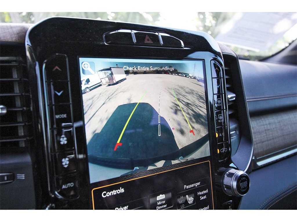 Off-Road Group with electronic locking rear axle and hill descent control, trailer brake controller, rearview camera, blind spot and cross-path detection, electronic stability control, and Ram’s smooth, class-leading ride quality.