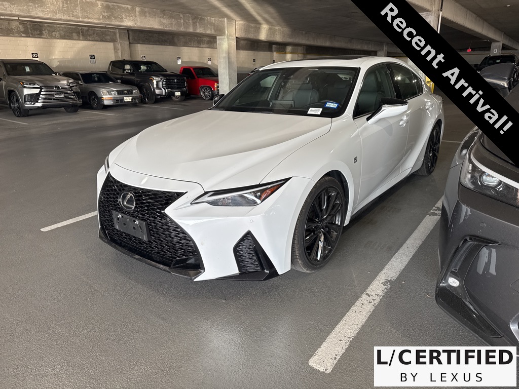 Recent Arrival! 2023 Lexus IS 350 F SPORT Certified. Black Artificial Leather. Ultra White RWD 8-Speed Automatic 3.5L V6 DOHC Dual VVT-i 24V