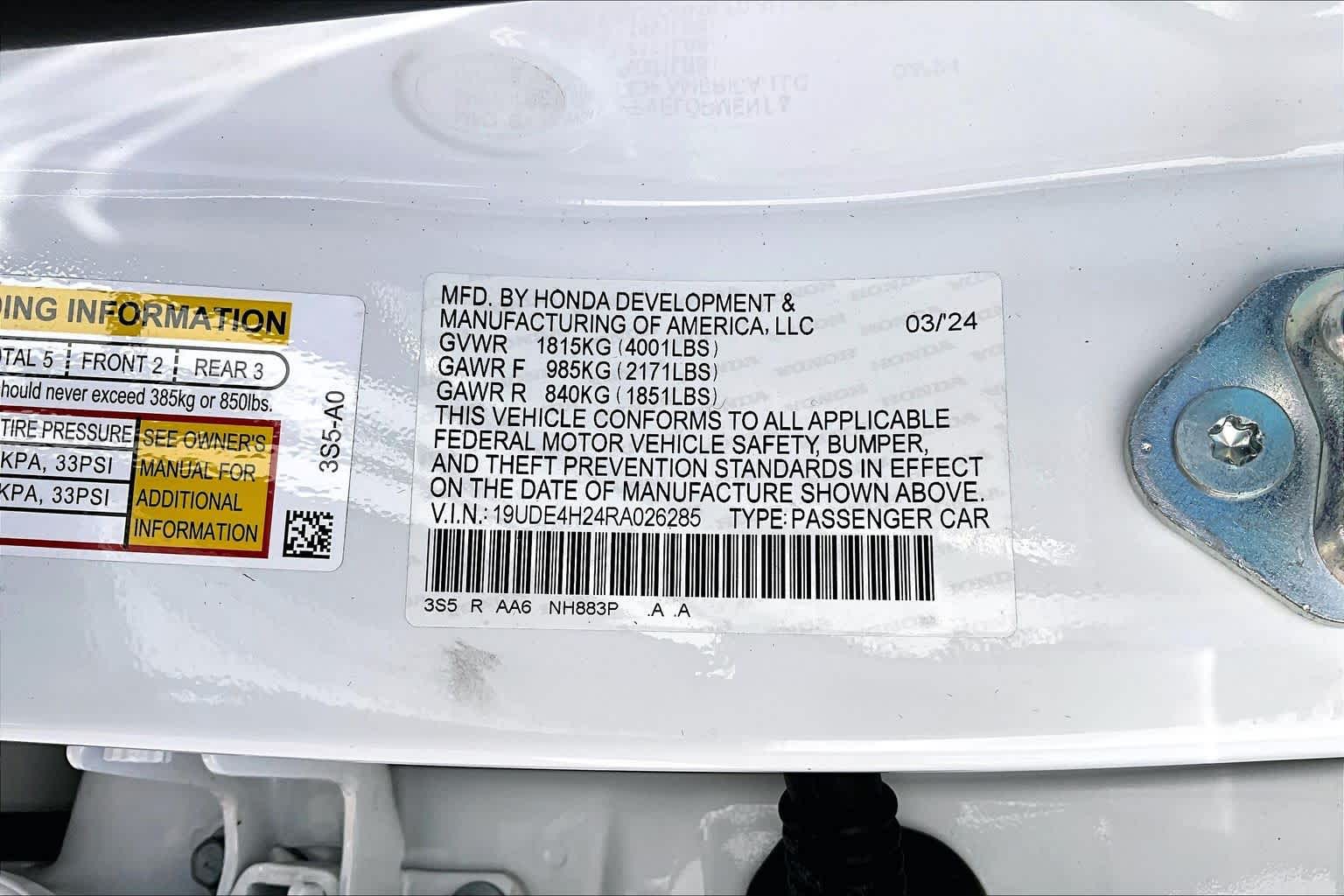 19UDE4H24RA026285Stock #
