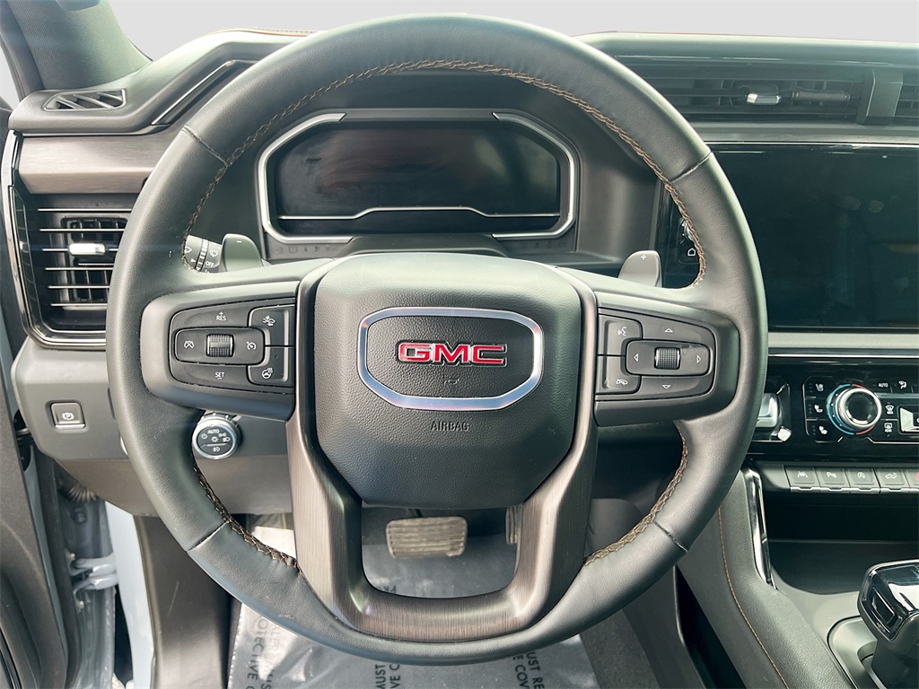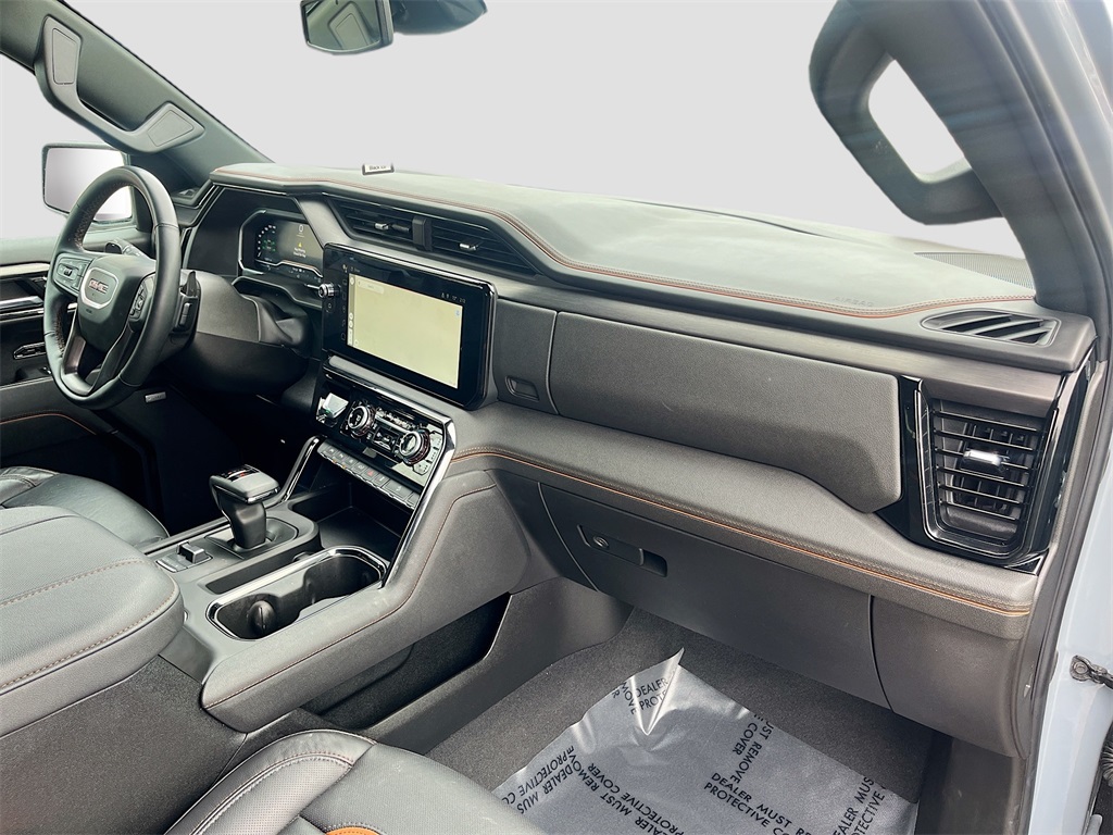 Discover the exceptional 2024 GMC Sierra 1500 4WD Crew Cab Short Box AT4, available now at AutoSavvy Houston Southwest. This robust pickup, finished in striking Thunderstorm Gray, is powered by a Duramax 3.0L I-6 turbo-diesel engine, delivering 305 horsepower for a powerful yet efficient drive, achieving 23 MPG on the highway. With only 12,242 miles, it offers a near-new experience. The Sierra 1500 AT4 is designed with luxury and capability in mind, featuring Jet Black leather seats with Kalahar
