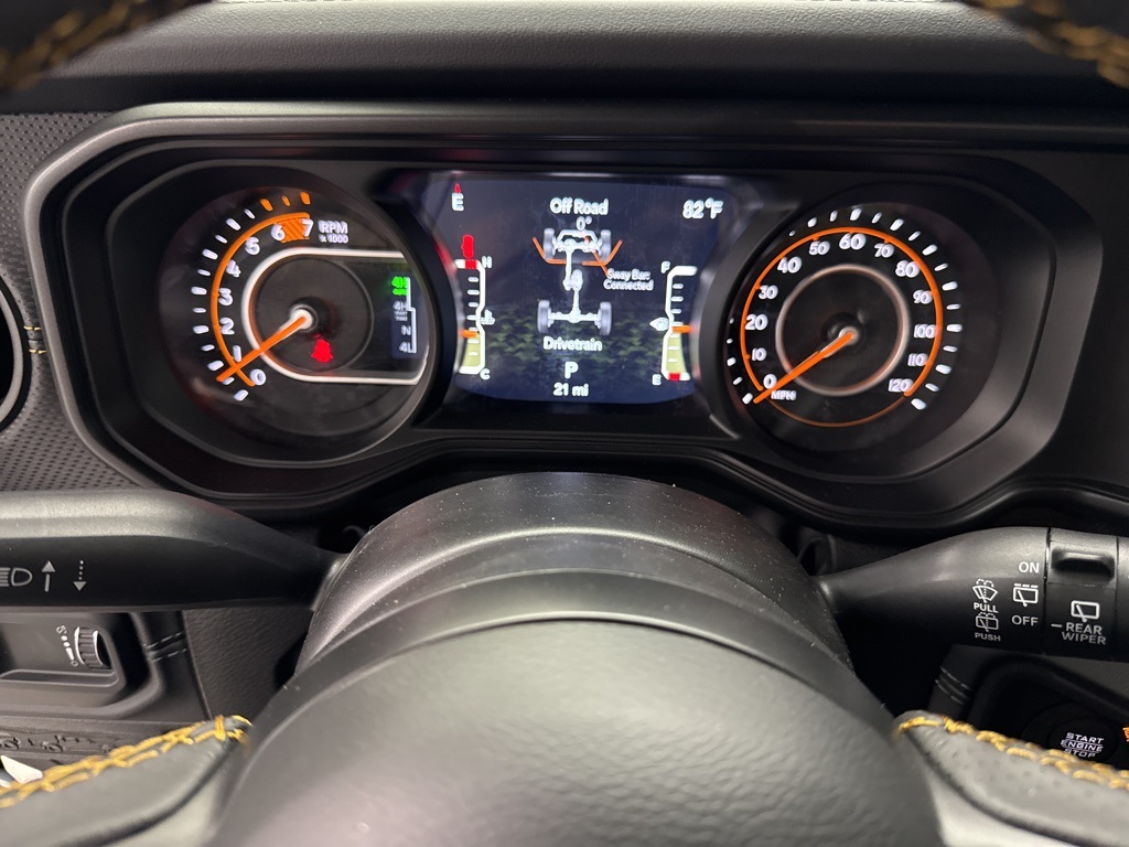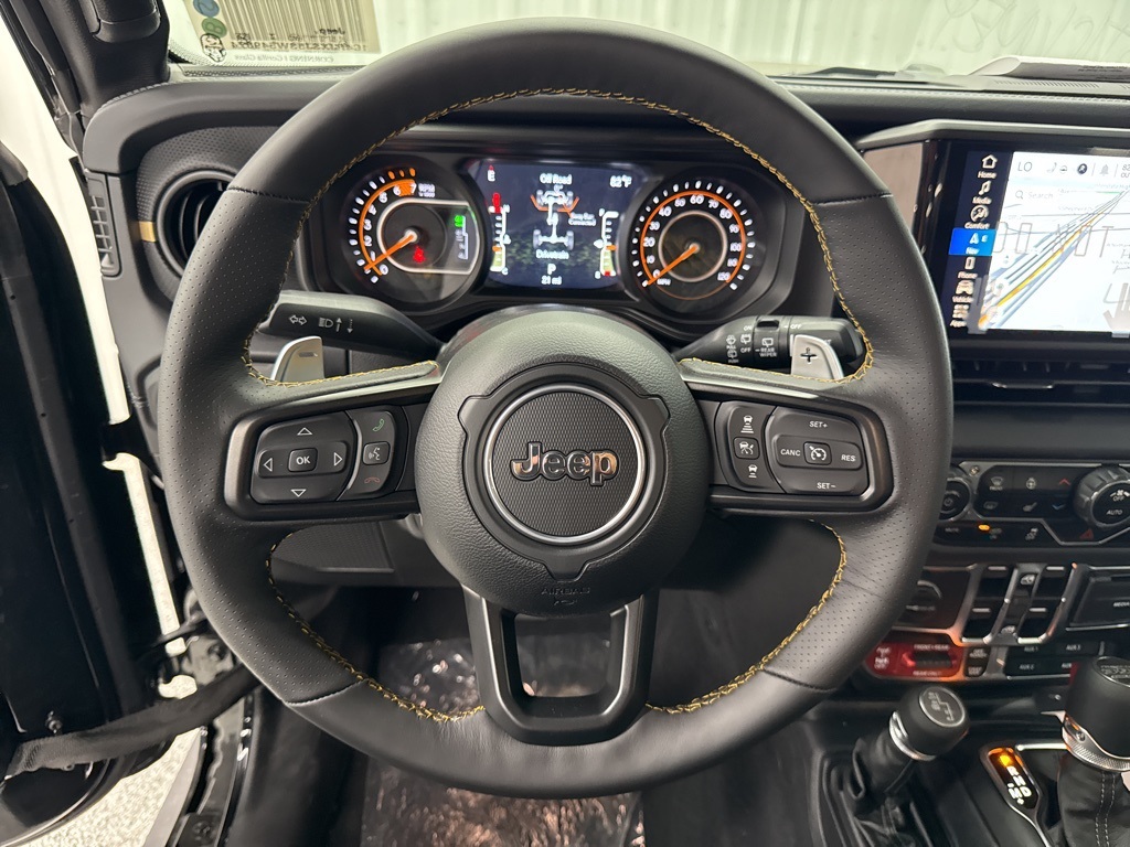 n, 392 Final Edition Nappa Leather Seat, 392 Suspension, 4-Wheel Disc Brakes, 4.56 Rear Axle Ratio, 9 Speakers, ABS brakes, Air Conditioning, Alloy wheels, AM/FM radio: SiriusXM with 360L, Apple CarPlay/Android Auto, Auto High-beam Headlights, Auto-dimming Rear-View mirror, Automatic temperature control, Brake assist, Compass, Convertible HardTop, Delay-off headlights, Driver door bin, Driver vanity mirror, Dual front impact airbags, Dual front side impact airbags, Electronic Stability Control, Emergency communication system: Jeep Connect, Front anti-roll bar, Front Bucket Seats, Front Center Armrest w/Storage, Front dual zone A/C, Front fog lights, Front reading lights, Fully automatic headlights, Garage door transmitter, Glass rear window, Heated door mirrors, Heated front seats, Heated steering wheel, Illuminated entry, Integrated roll-over protection, Leather Shift Knob, Leather steering wheel, Low tire pressure warning, MOPAR Sunrider For Hardtop, Navigation System, Occupant sensing airbag, Outside temperature display, Overhead airbag, Panic alarm, ParkView Rear Back-Up Camera, Passenger door bin, Passenger vanity mirror, Power door mirrors, Power driver seat, Power passenger seat, Power steering, Power windows, Radio data system, Radio: Uconnect 5 Nav w/12.3" Display, Rear anti-roll bar, Rear reading lights, Rear seat center armrest, Rear window defroster, Rear window wiper, Remote keyless entry, Security system, Speed control, Split folding rear seat, Steering wheel mounted audio controls, Tachometer, Telescoping steering wheel, Tilt steering wheel, Traction control, Trip computer, Variably intermittent wipers, Voltmeter, and Wheels: 17" x 8" Bronze Beadlock Capable.