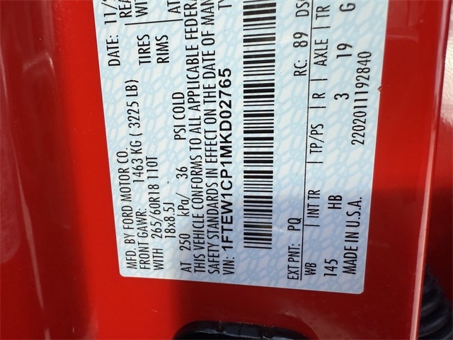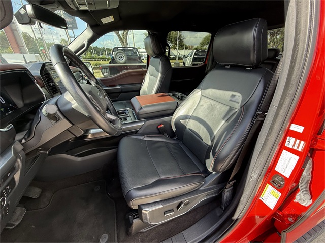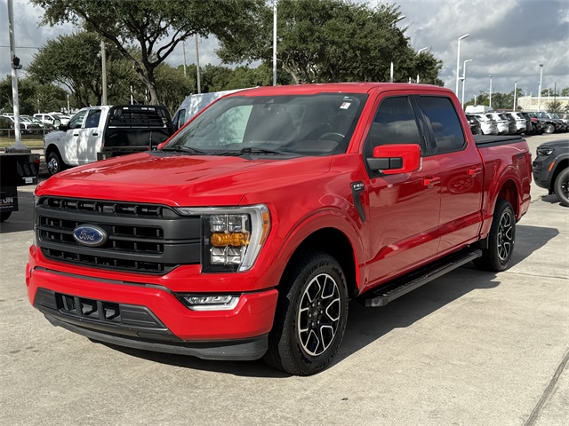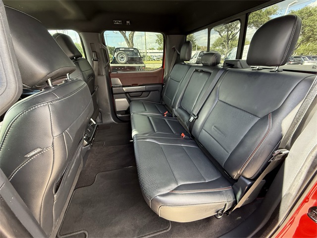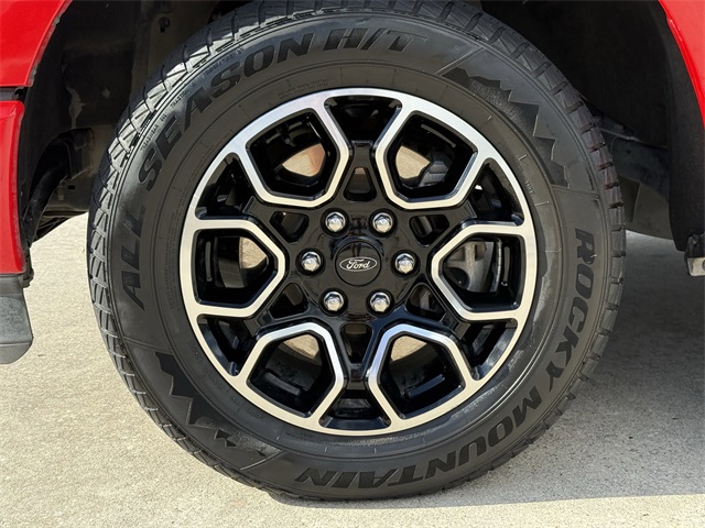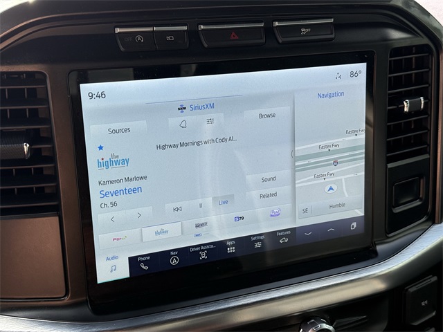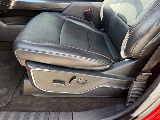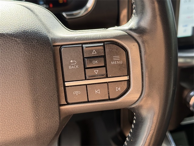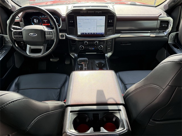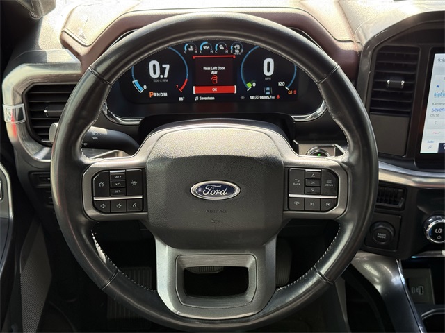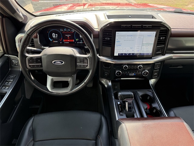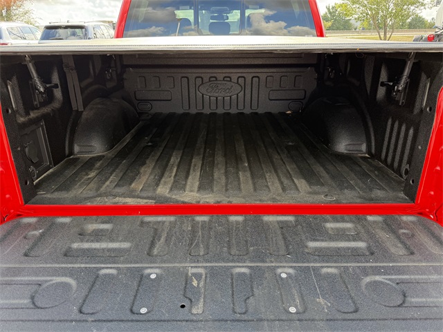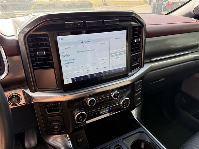 Trailer Hitch Receiver, Compass, Dark 2-Bar & 1 Minor Bar Style Grille, Delay-off headlights, Driver vanity mirror, Dual front impact airbags, Dual front side impact airbags, Electronic Stability Control, Emergency communication system: SYNC 4 911 Assist, Equipment Group 501A Mid, Exterior Parking Camera Rear, Front anti-roll bar, Front Center Armrest w/Storage, Front dual zone A/C, Front fog lights, Front reading lights, Front wheel independent suspension, Fully automatic headlights, Heated door mirrors, Heated front seats, Illuminated entry, Lariat Sport Appearance Package, Leather-Trimmed 40/20/40 Front Seat, Low tire pressure warning, Memory seat, Navigation system: Connected Navigation (90-Day Trial), Occupant sensing airbag, Onboard 400W Outlet, Overhead airbag, Overhead console, Panic alarm, Passenger door bin, Passenger vanity mirror, Pedal memory, Power door mirrors, Power driver seat, Power passenger seat, Radio: B&O Sound System by Bang & Olufsen, Rear reading lights, Rear seat center armrest, Rear step bumper, Remote keyless entry, Security system, Soft Folding Tonneau Pickup Box Cover, Speed control, Speed-sensing steering, Split folding rear seat, Steering wheel mounted audio controls, Telescoping steering wheel, Tilt steering wheel, Tough Bed Spray-In Bedliner, Traction control, Turn signal indicator mirrors, Universal Garage Door Opener, Variably intermittent wipers, Ventilated front seats, Wheels: 18" 6-Spoke Machined Aluminum.
