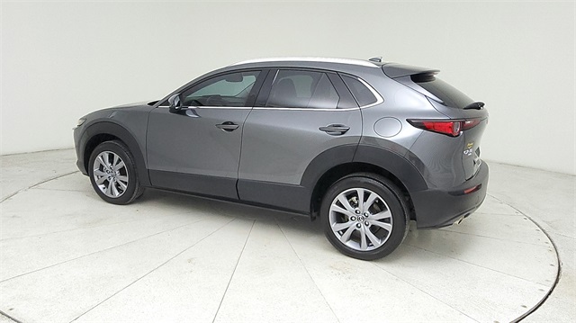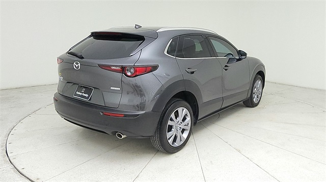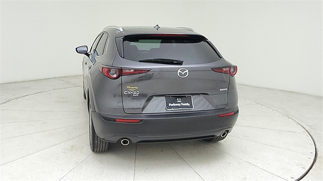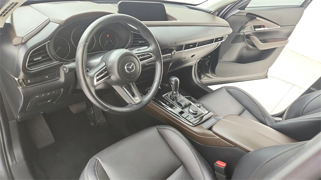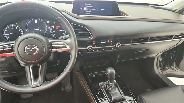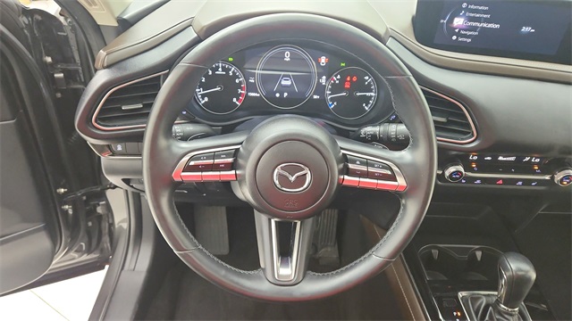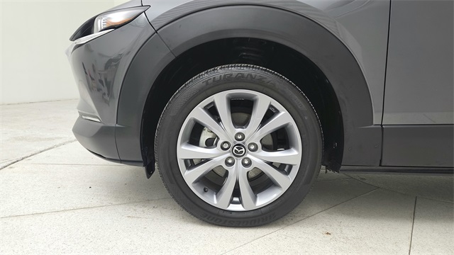 This 2022 Mazda CX-30 2.5 S Premium Package in Machine Gray Metallic comes with the following features: SKYACTIV® 2.5L 4-Cylinder DOHC 16V 6-Speed Automatic AWD 3.850 Axle Ratio, 4-Wheel Disc Brakes, 8 Speakers, ABS brakes, Air Conditioning, Alloy wheels, AppLink/Apple CarPlay and Android Auto, Auto High-beam Headlights, Automatic temperature control, Brake assist, Bumpers: body-color, Cargo Mat, Compass, Delay-off headlights, Driver door bin, Driver vanity mirror, Dual front impact airbags, Dual front side impact airbags, Electronic Stability Control, Emergency communication system: Mazda Connected Services (Automatic 911 Dialing), Exterior Parking Camera Rear, Front anti-roll bar, Front Bucket Seats, Front Center Armrest, Front dual zone A/C, Front reading lights, Front wheel independent suspension, Fully automatic headlights, Heads-Up Display, Heated Front Bucket Seats, Heated front seats, Illuminated entry, Knee airbag, Leather Seat Trim, Leather Shift Knob, Leather steering wheel, Low tire pressure warning, Machine Gray Metallic Paint, MAZDA CONNECT Infotainment System, Memory seat, Navigation system: MAZDA CONNECT, Occupant sensing airbag, Outside temperature display, Overhead airbag, Overhead console, Panic alarm, Passenger door bin, Passenger vanity mirror, Power door mirrors, Power driver seat, Power Liftgate, Power moonroof, Power steering, Power windows, Radio data system, Radio: AM/FM/HD Audio System w/Mazda Navigation, Rain sensing wipers, Rear seat center armrest, Rear window defroster, Rear window wiper, Remote keyless entry, Roof rack: rails only, Speed control, Speed-sensing steering, Split folding rear seat, Spoiler, Steering wheel mounted audio controls, Tachometer, Telescoping steering wheel, Tilt steering wheel, Traction control, Trip computer, Turn signal indicator mirrors, Variably intermittent wipers, and Wheels: 18" x 7J Aluminum Alloy.