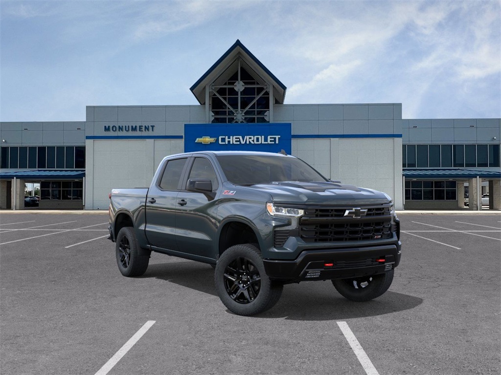 nt that enables the engine to operate in 17 different patterns between 2 and 8 cylinders, depending on demand, to optimize power delivery and efficiency, SEATS, FRONT BUCKET with center console (Includes (EPH) Electronic Transmission Range Selector (console mounted). AUDIO SYSTEM, CHEVROLET INFOTAINMENT 3 PREMIUM SYSTEM with Google built-in compatibility (select service plan required, terms and limitations apply) including navigation capability, 13.4 diagonal HD color touchscreen, includes multi-touch display, AM/FM stereo, Bluetooth® streaming audio for music and most phones; featuring Wireless Apple CarPlay® and Wireless Android Auto® capability for compatible phones, advanced voice recognition, in-vehicle apps, personalized profiles for infotainment and vehicle settings (STD), TRANSMISSION, 10-SPEED AUTOMATIC with Electronic Transmission Range Selector, (ETRS), electronically controlled with overdrive, tow/haul mode and steering column paddle shifters. Includes Cruise Grade Braking and Powertrain Grade Braking. Chevrolet LT Trail Boss with Cypress Gray exterior and Jet Black interior features a 8 Cylinder Engine with 420 HP at 5600 RPM*.