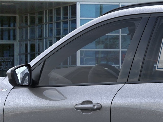 r, Compass, Delay-off headlights, Driver door bin, Driver vanity mirror, Dual front impact airbags, Dual front side impact airbags, Easy Access Cargo Shade, Electronic Stability Control, Emergency communication system: SYNC 4 911 Assist, FordPass Connect, Four wheel independent suspension, Front anti-roll bar, Front Bucket Seats, Front Center Armrest, Front dual zone A/C, Front fog lights, Front License Plate Bracket, Front reading lights, Fully automatic headlights, Heated door mirrors, Heated front seats, Heated steering wheel, Heated Vinyl/Cloth Front Sport Contour Bucket Seats, Illuminated entry, Knee airbag, Low tire pressure warning, Memory seat, Navigation system: Connected Navigation, Occupant sensing airbag, Outside temperature display, Overhead airbag, Overhead console, Panic alarm, Panoramic Vista Roof, Passenger door bin, Passenger vanity mirror, Power door mirrors, Power driver seat, Power Liftgate, Power passenger seat, Power steering, Power windows, Radio data system, Rear anti-roll bar, Rear reading lights, Rear seat center armrest, Rear window defroster, Rear window wiper, Remote keyless entry, Security system, Speed control, Speed-sensing steering, Speed-Sensitive Wipers, Split folding rear seat, Spoiler, Sport steering wheel, Steering wheel mounted audio controls, SYNC 4 w/Enhanced Voice Recognition, Tachometer, Telescoping steering wheel, Tilt steering wheel, Traction control, Trip computer, Variably intermittent wipers, and Wheels: 19" Machined-Face Ebony-Painted Aluminum. 42/36 City/Highway MPG