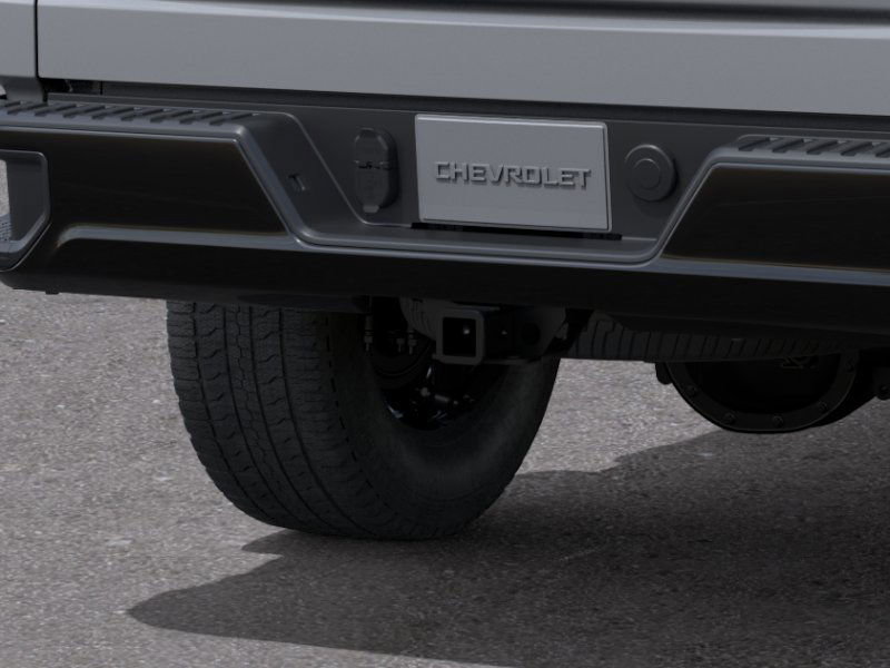 ions and is equipped with a Tow Hitch and a set of dealer-installed packages. Power and performance - Engine: Turbomax 2.7L turbocharged I4 - Horsepower: 310 hp @ 5,600 rpm - Torque: 430 lb-ft @ 3,000 rpm - Transmission: 8-speed automatic, electronic controls with overdrive - Drivetrain: Four-wheel drive with tow/haul mode - Tow capability: Tow hitch ready for day-to-day duties and light-to-mid range trail work - Efficiency: 17 mpg city / 21 mpg highway - Vehicle weight and setup: GVWR 7,000 lbs (3,175 kg); rear axle 3.42 Capabilities and exterior - Trim and configuration: 4WD Crew Cab 147 Custom Trail Boss - Exterior: Sterling Gray Metallic - Wheel and tire setup: 20-inch High Gloss Black painted wheels; 275/60R20 all-terrain tires; spare tire included (QAQ) - Body and chassis features: All-Terrain tires; rear wheelhouse liners - Accessories: Turbomax Blackout Package including Dark Essentials Package; 4 Black round assist steps; Black Chrome exhaust tip; 20 High Gloss Black wheels - Additional equipment: Custom Convenience Package; Custom TB Blackout Package & Turbomax Engine Credit - Safety and driver assistance: Lane Departure Warning; Lane Keeping Assist; Front Collision Mitigation; Front Collision Warning; Automatic High Beams Interior and comfort - Seats: Cloth seating; 5-passenger setup with a split rear bench - Driver comfort: Power driver seat with adjustable lumbar - Climate: Front and rear air conditioning; rear A/C - Convenience: Keyless entry; remote engine sta