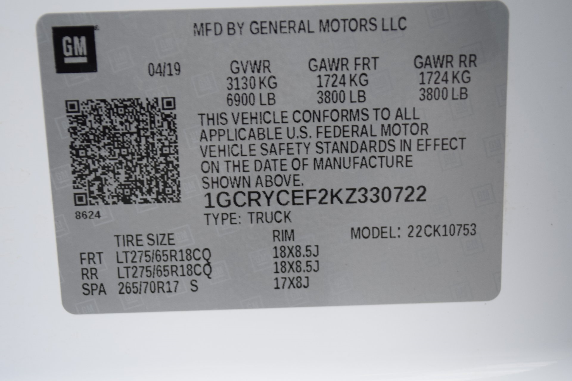 1GCRYCEF2KZ330722