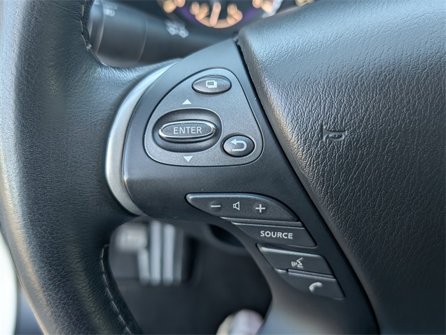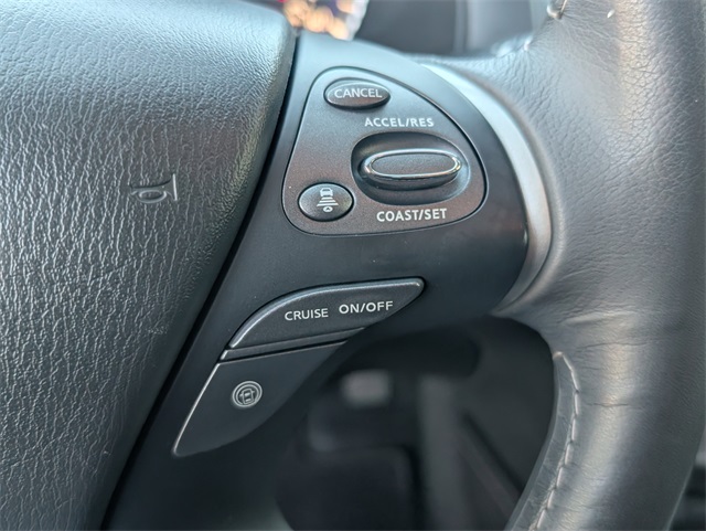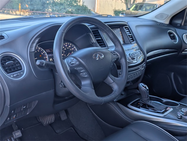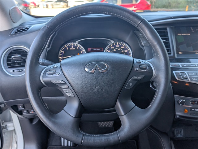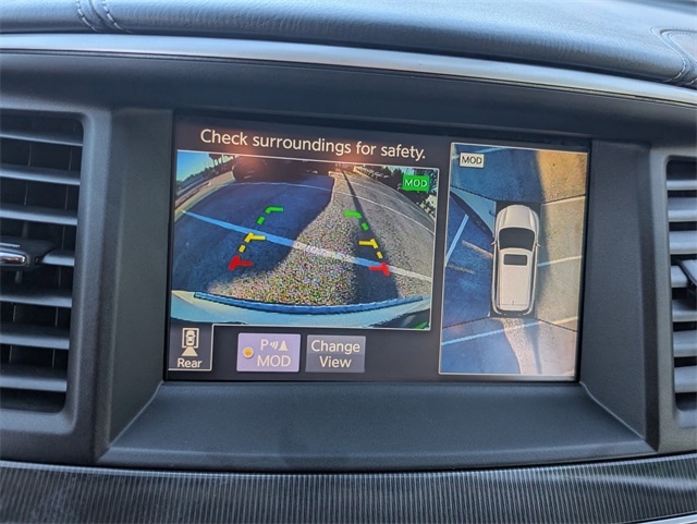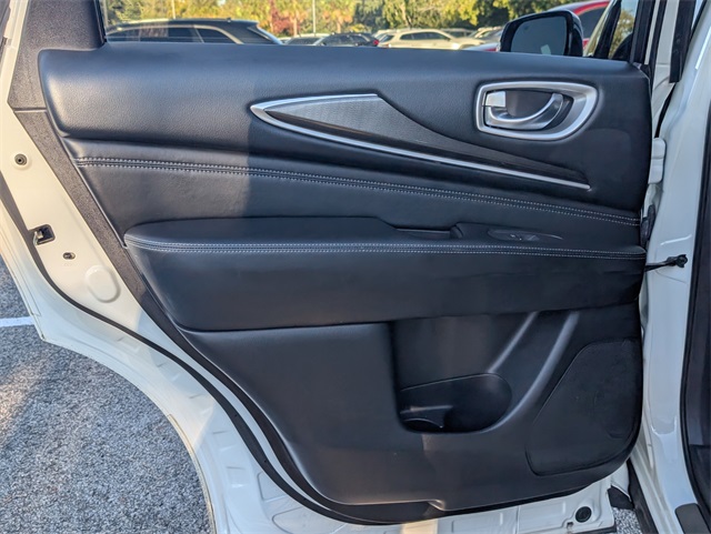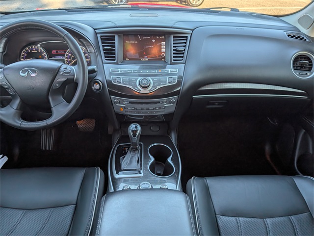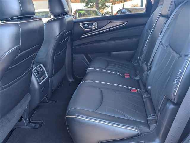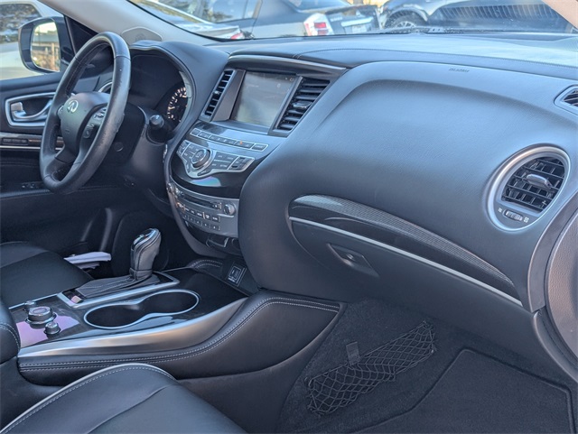 ors, Automatic temperature control, Backup Collision Intervention (BCI), Blind Spot Intervention (BSI), Distance Control Assist, Dual front impact airbags, Dual front side impact airbags, ECO Pedal, Essential Package, Front & Rear Sonar Sensors (2FR/2RR), Front & Rear Sonar Sensors (4FR/4RR), Front dual zone A/C, Fully automatic headlights, High Beam Assist (HBA), Illuminated Kick Plates (IKP), INFINITI InTouch w/Navigation & InTouch Services, Intelligent Cruise Control (Full-Speed Range), Lane Departure Prevention (LDP), Lane Departure Warning System, Leather-Appointed Seat Trim, Low tire pressure warning, Navigation System, Occupant sensing airbag, Overhead airbag, Power driver seat, Power Liftgate, Power steering, Power windows, ProASSIST Package, Rain-Sensing Front Windshield Wipers, Rear air conditioning, Rear window defroster, Remote keyless entry, Steering wheel memory, Steering wheel mounted audio controls.
