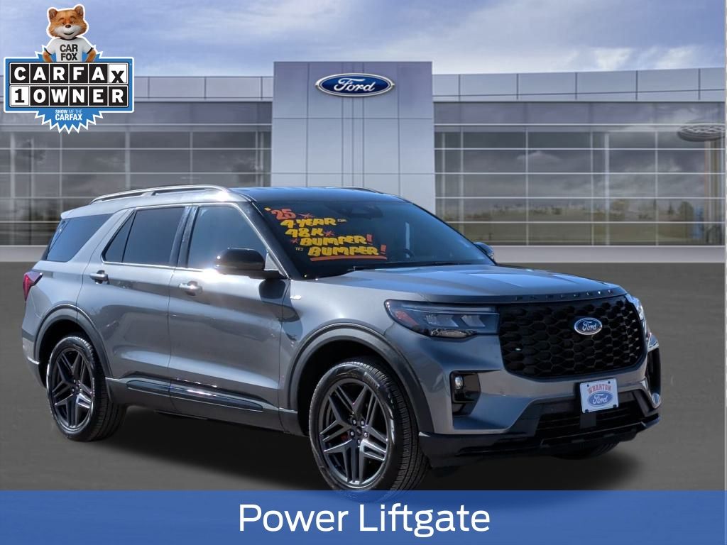 Certified. Carbonized Gray Metallic 2025 Ford Explorer ST-Line 4WD 10-Speed Automatic 2.3L EcoBoost I-4 1 OWNER, 4WD, Alloy wheels, Equipment Group 300A Standard Package, Heated front seats, Performance Brakes, Power Liftgate, Radio: B&O Sound System by Bang & Olufsen, Red Painted Perf Front & Rear Brake Calipers, ST-Line Street Pack, Wheels: 21" Magnetite-Painted Aluminum.