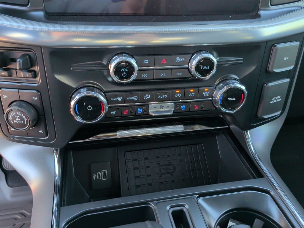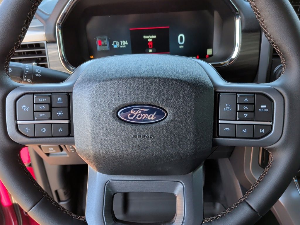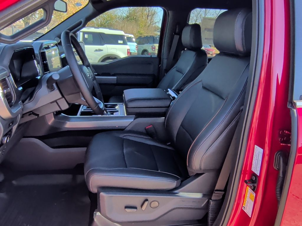 obile Office Package (Console Worksurface, Partitioned Lockable Rear Storage, and Wireless Charging), Tow/Haul Package, 4WD, 4-Wheel Disc Brakes, 8 Speakers, ABS brakes, ActiveX Trimmed Bucket Seats, Adjustable pedals, Air Conditioning, Alloy wheels, AM/FM radio: SiriusXM with 360L, Auto High-beam Headlights, Auto-dimming door mirrors, Auto-dimming Rear-View mirror, Automatic temperature control, Brake assist, Bumpers: chrome, Chrome wheels, Compass, Delay-off headlights, Driver door bin, Driver vanity mirror, Dual front impact airbags, Dual front side impact airbags, Electronic Stability Control, Emergency communication system: SYNC 4 911 Assist, Front anti-roll bar, Front Bucket Seats, Front Center Armrest, Front dual zone A/C, Front fog lights, Front License Plate Bracket, Front reading lights, Front wheel independent suspension, Fully automatic headlights, Garage door transmitter, Heated door mirrors, Heated front seats, Heated steering wheel, Illuminated entry, Internet access capable: FordPass Connect 5G, Low tire pressure warning, Memory seat, Navigation system: Connected Navigation, Occupant sensing airbag, Outside temperature display, Overhead airbag, Overhead console, Panic alarm, Passenger door bin, Passenger vanity mirror, Pedal memory, Power door mirrors, Power driver seat, Power passenger seat, Power steering, Power windows, Radio data system, Radio: B&O Sound System by Bang & Olufsen, Rain sensing wipers, Rear reading lights, Rear seat center armrest, Rear step bumper, Rear window defroster, Remote keyless entry, Security system, Speed control, Split folding rear seat, Steering wheel mounted audio controls, SYNC 4 w/Enhanced Voice Recognition, Tachometer, Telescoping steering wheel, Tilt steering wheel, Traction control, Trip computer, Turn signal indicator mirrors, Variably intermittent wipers, Ventilated front seats, Voltmeter, and Wheels: 18" Chrome-Like PVD.