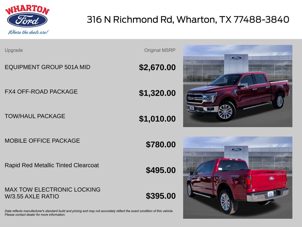 Rapid Red Metallic Tinted Clearcoat 2025 Ford F-150 Lariat 4WD 10-Speed Automatic 3.5L V6 EcoBoost 4WD.